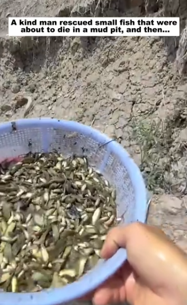C1012018_kind man rescued small fish were about to die in mud pit, an…
